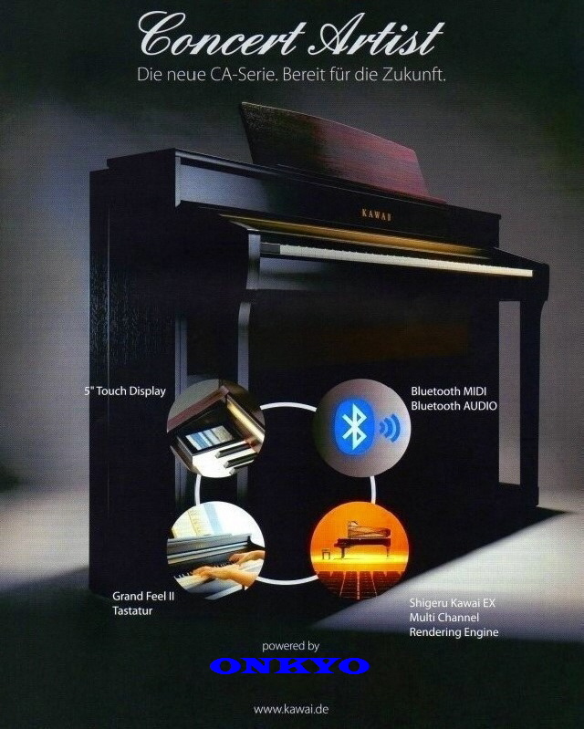 Die CA-Serie (Concert Artist) vereint die Spitzenprodukte der KAWAI Digitalpianos. Die Tastaturen der Concert Artist Serie bestehen aus Holztasten und einer Hammermechanik, die einem Konzertflügel nachempfunden wurde, d.h. die Hämmer sitzen oberhalb der Tasten.