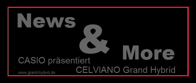 Unter "News & More" präsentieren wir Aktuelles und Produktneuheiten im Tastenbereich u.a. CELVIANO - Grand Hybrid-Digitalpiano von CASIO "akustische Exzellenz trifft digitale Spitzenklasse" - mehr Infos über uns oder unter www.grand-hybrid.de